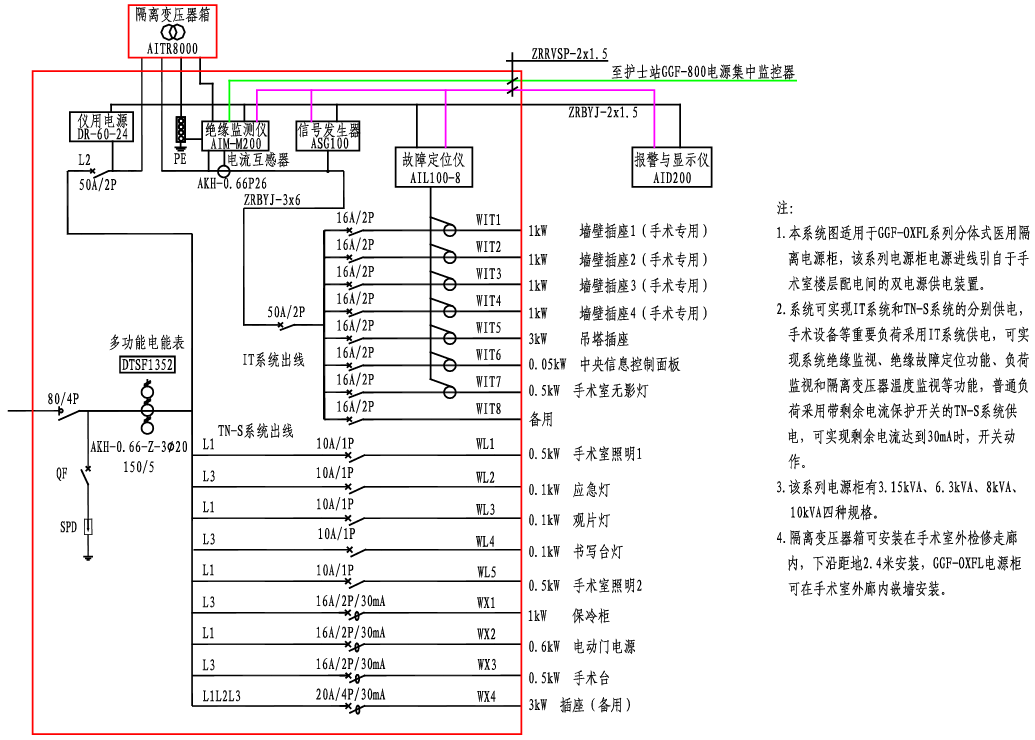 GGF-OXFL醫(yī)用隔離電源柜系統(tǒng)接線圖