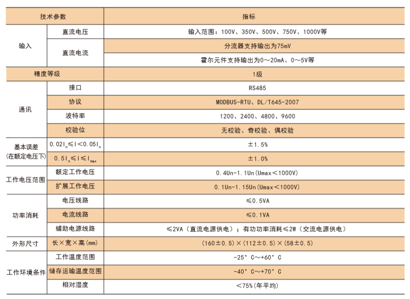 技術要求:電壓輸入DC750V,電流輸入DC300A/75mV