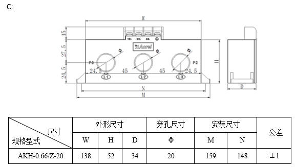 AKH-0.66 Z系列三相電流互感器產品外形美觀,接線方便。外殼材料可選用耐高溫增強尼龍、阻燃PC/ABS合金,作為交流電流信號采集元件,一般與AMC16、PZ-3O0配套使用,可減小電流互感器安裝空間和接線的煩瑣,為用戶降低成本。