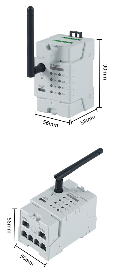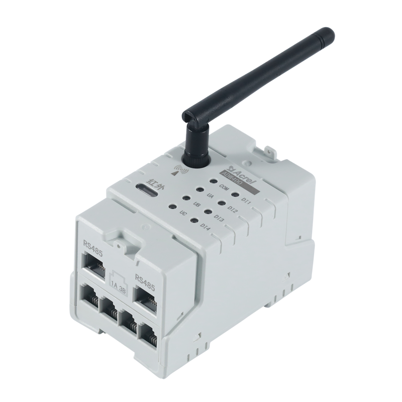 ADW400環保監測模塊主要用于計量低壓網絡的三相有功電能,同時可選擇四個回路的電流輸入,具有RS485通訊和470MHz無線通訊功能,方便用戶進行用電監測、集抄和管理。可靈活安裝于配電箱內,實現對不同區域和不同負荷的分項電能計量,統計和分析。