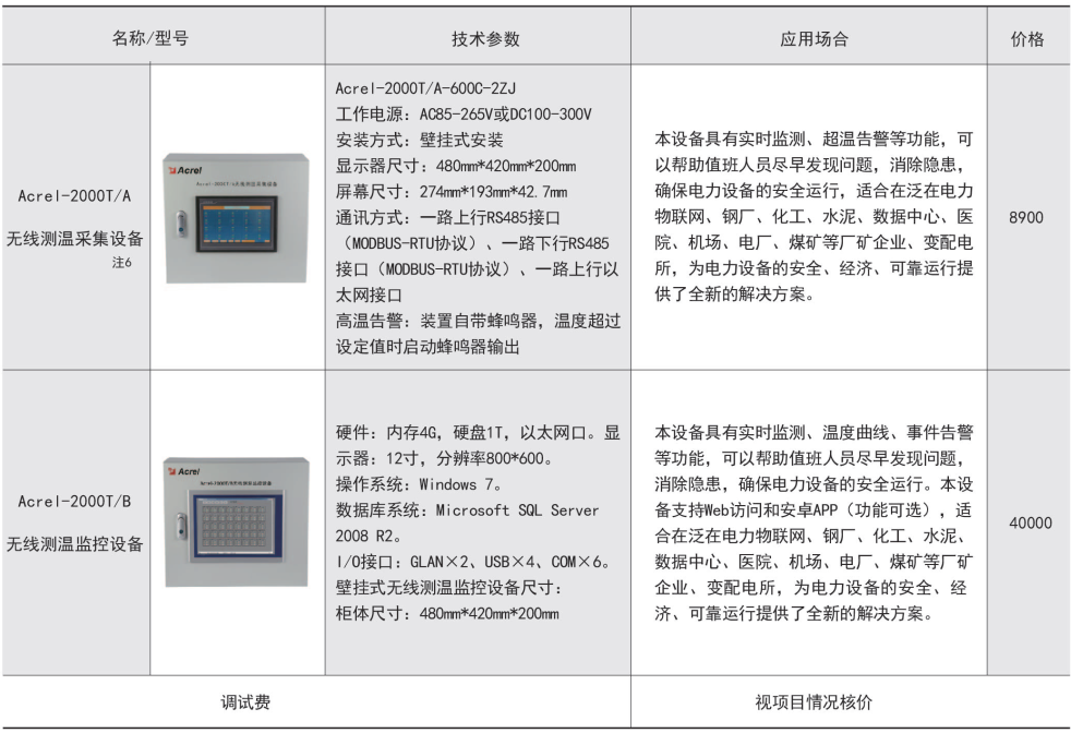 綜上所述,確定型號為:無線測溫集中觸摸屏:AARTM-7062HT-4(HI),1臺;無線測溫傳感器:ATE200,90個;無線測溫收發器:ATC200,10個