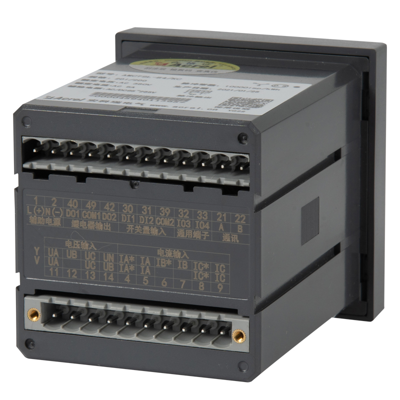 它集成全部電力參數的測量(如單相或者三相的電流、電壓、有功功率、無功功率、視在功率、頻率、功率因數等)、復費率電能計量、四象限電能計量、諧波分析以及電能監測和考核管理。多種外圍接口功能:帶有RS485/MODBUS-RTU協議;帶開關量輸入和繼電器輸出可實現斷路器開關的“遙信”和“遙控”的功能,采用LCD顯示界面,通過面板按鍵來實現參數設置和控制,非常適合于實時電力監控系統。