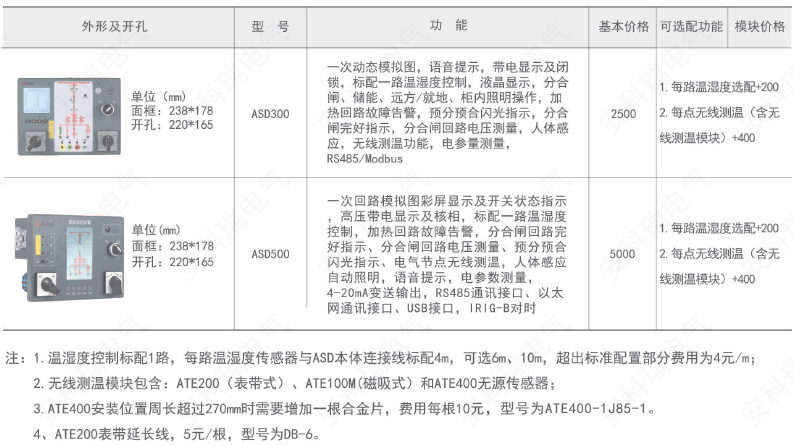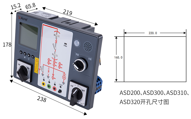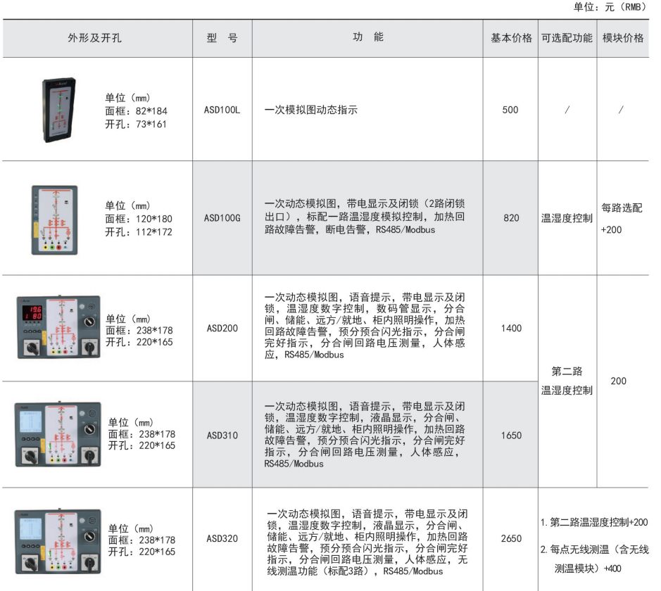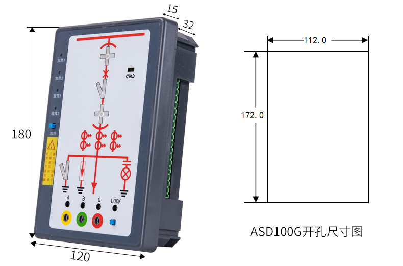 ASD系列開關(guān)柜綜合測(cè)控裝置具有一次回路模擬圖及開關(guān)狀態(tài)指示、高壓帶電顯示、自動(dòng)溫濕度控制、人體感應(yīng)自動(dòng)照明、語(yǔ)音提示、電參數(shù)測(cè)量及RS485通訊接口等功能,集操作、顯示于一體,直觀地體現(xiàn)柜內(nèi)元件的工作狀態(tài)及工作環(huán)境。