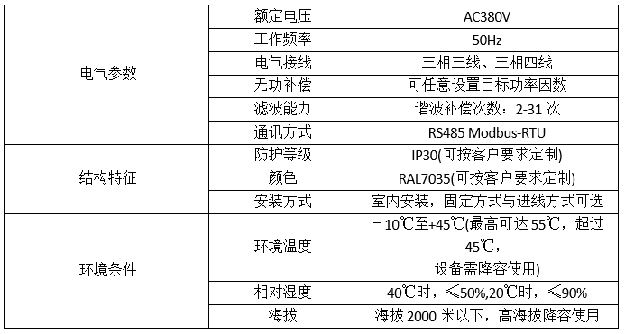 技術參數:無功補償容量120 Kvar,諧波補償電流50A