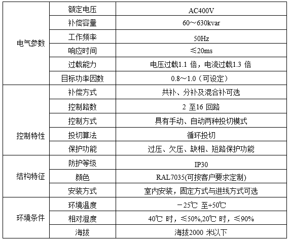 適用于頻率50Hz電壓0.4kV電網的無功功率自動補償。