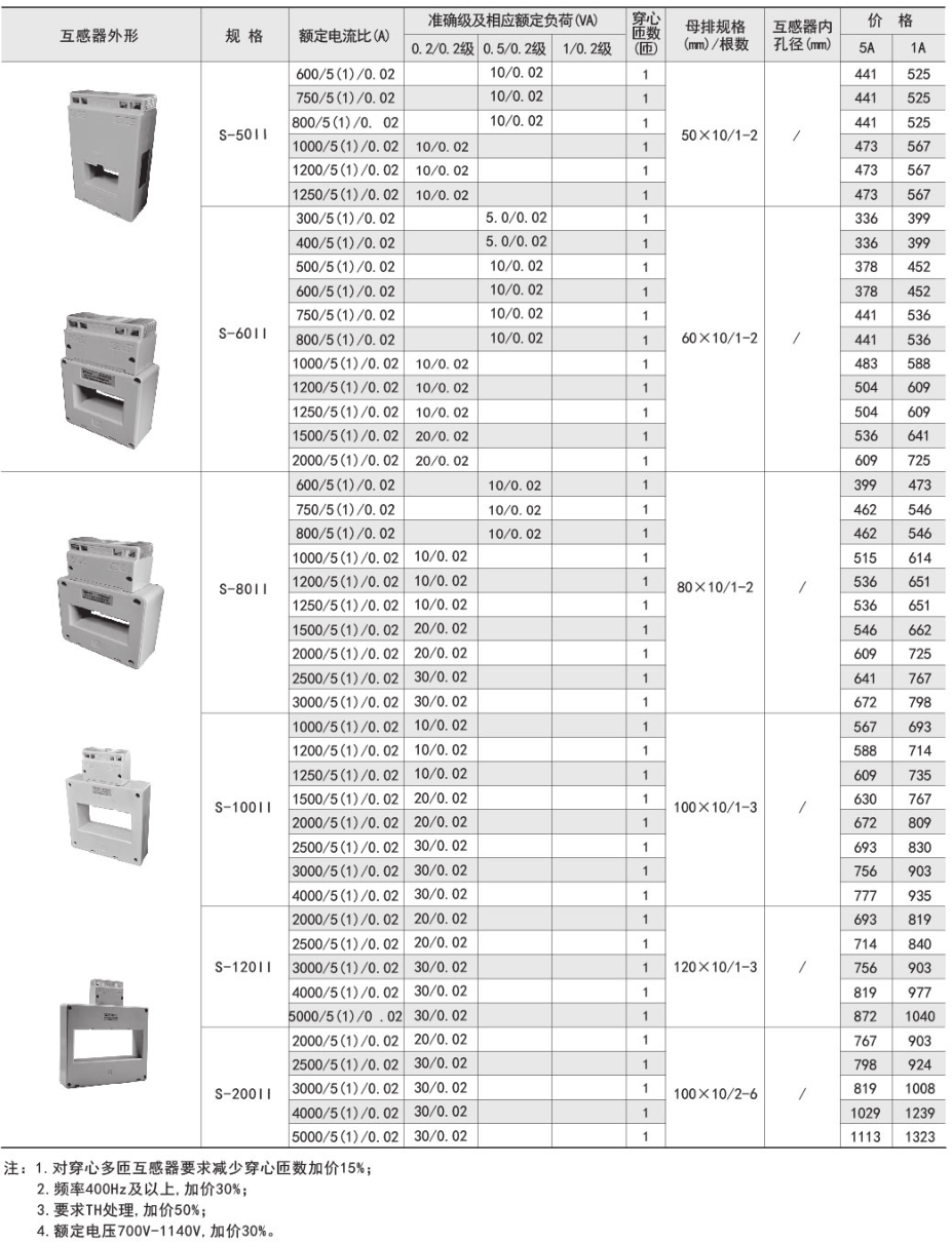 準(zhǔn)確級及相應(yīng)額定負(fù)荷(VA) |
