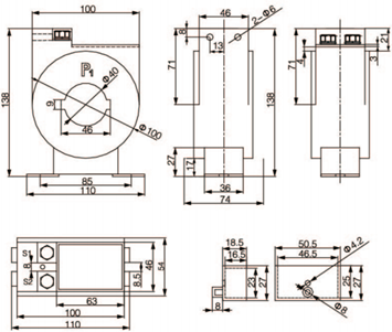 技術要求:額定電流比150A/5A;準確級1級;額定負荷2.5VA;穿心匝數1匝。