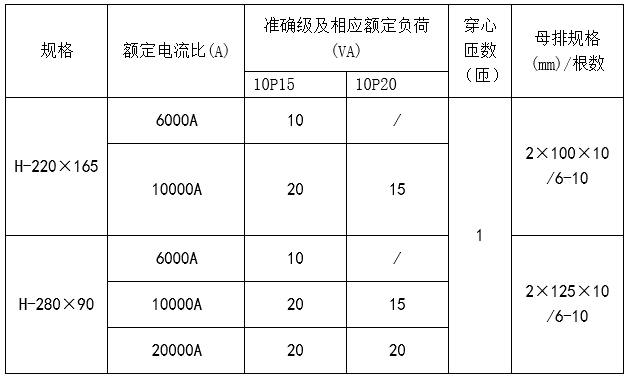 技術要求:額定電流比6000A/5A;準確級10P15;額定負荷30VA;穿心匝數1匝。