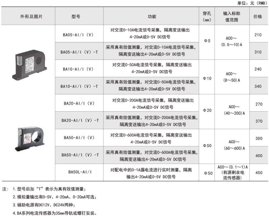 AC0~(0.1~1)A(有源剩余電流傳感器) |