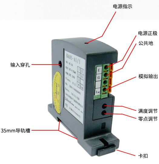對交流0-10A電流信號采集,隔離變送輸出4-20mA或0-5V DC信號 |