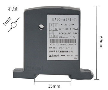 對配電中的0-1A漏電流進行實時測量,隔離輸出4-20mA或0-5V DC信號 |