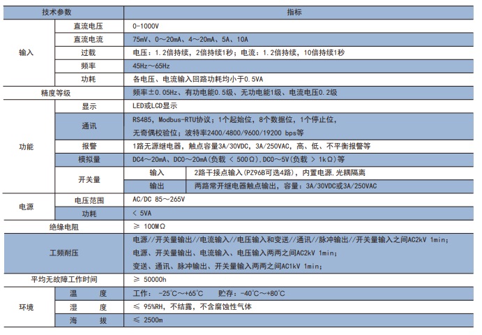 通訊協議:RS485接口 Modbus/RTU協議;DL/T645-2007 協議