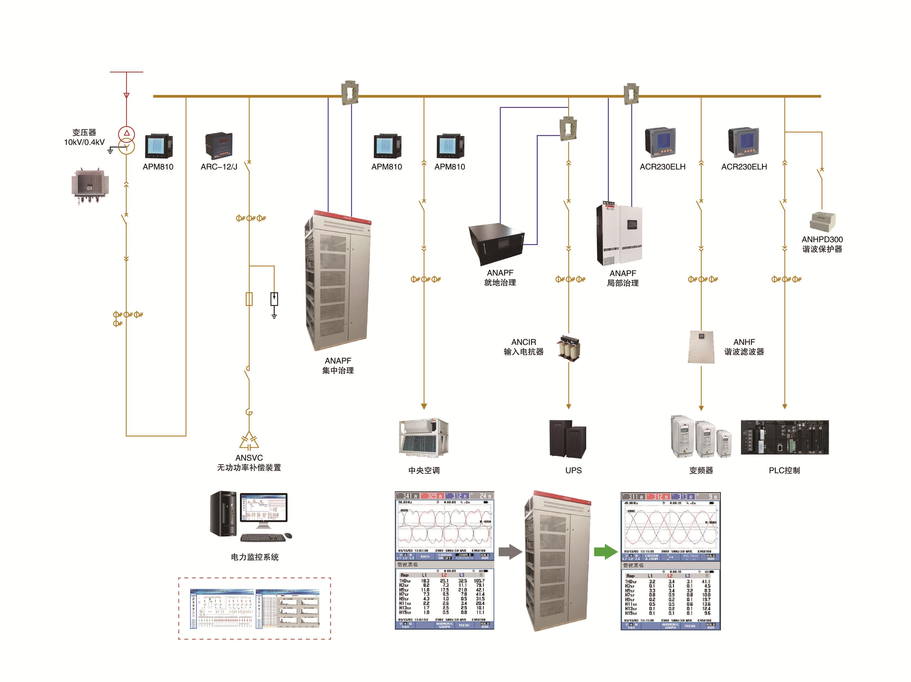 1、變壓器容量為400/800/1000/1250/1600/2000KVA的三相補(bǔ)償應(yīng)用方案。