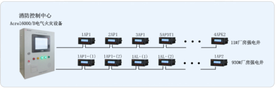 我司承接其電氣火災(zāi)系統(tǒng)的搭建,對(duì)安裝于廠房配電箱進(jìn)線處的剩余電流火災(zāi)探測(cè)器設(shè)計(jì)一套Acrel-6000/B電氣火災(zāi)系統(tǒng),由此來(lái)實(shí)時(shí)監(jiān)測(cè)廠房?jī)?nèi)重要回路的漏電流,以確保廠房配電系統(tǒng)的電氣安全。