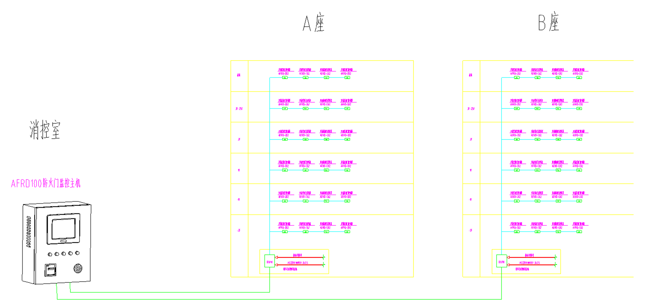 本項(xiàng)目為新疆•首府公館項(xiàng)目,現(xiàn)場(chǎng)各商住樓各樓道樓梯間及地下室區(qū)域的防火門安裝安科瑞AFRD系列防火門監(jiān)控模塊,在現(xiàn)場(chǎng)消防控制室設(shè)置安科瑞AFRD100/B壁掛式防火門監(jiān)控主機(jī),并在各棟樓內(nèi)安裝監(jiān)控區(qū)域分機(jī)實(shí)時(shí)監(jiān)控各防火門狀態(tài),防止防火門被異常開(kāi)啟。