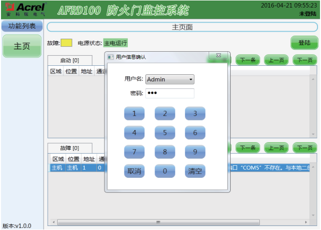 包含“登陸”按鈕、“界面標題”、“功能列表”、“系統狀態欄”四部分組成,可以快速查詢當前監控狀態,也可用于工作人員登錄操作。