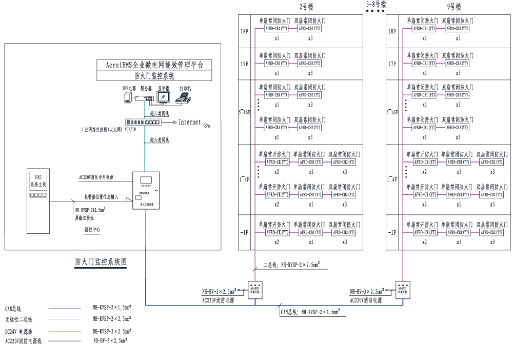 AFRD100防火門監控系統,是根據國家現行規范標準由安科瑞電氣股份有限公司研發的全數字化獨立運行的系統,已通過國家消防電子產品質量監督檢驗中心的消防電子產品試驗認證,并且均通過嚴格的EMC電磁兼容試驗,保證了該系列產品在低壓配電系統中的安全正常運行,現均已批量生產并在全國得到廣泛地應用。該系統通過對電動閉門器、電磁釋放器、門磁開關等進行信號采集及控制,實現了防火隔離和防煙,并根據用戶的需求,還可以與AcrelEMS企業微電網管理云平臺或電氣火災自動報警系統等進行數據交換和共享。