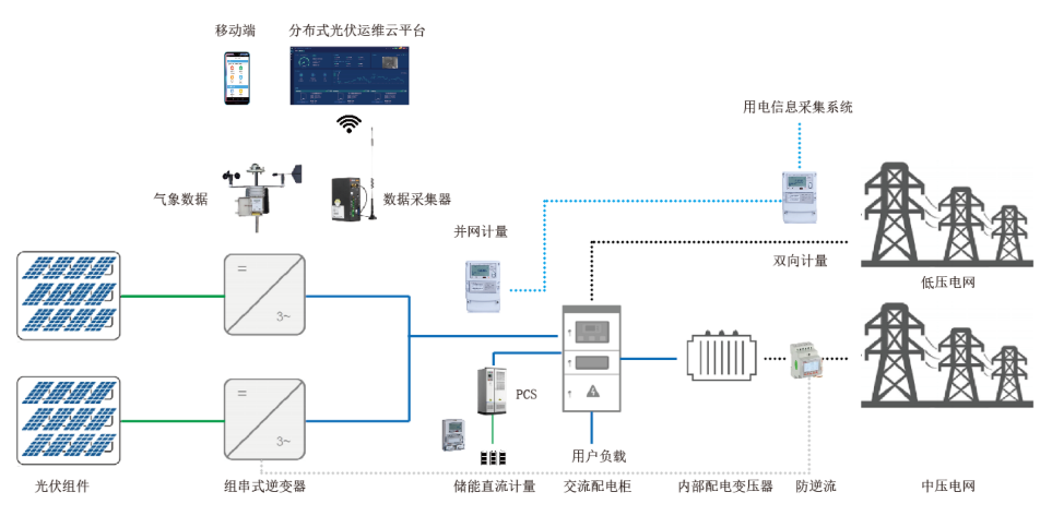 根據國家電網Q/GDW1480-2015 《分布式電源接入電網技術規定》:分布式電源并網電壓等級可根據各并網點裝機容量進行初步選擇,推薦如下:8kW 及以下可接入220V;8kW~400kW可接入380V;400kW~6000kW可接入10kV;5000kW~30000kW以上可接入35kV。并網電壓等級應根據電網條件,通過技術經濟比選論證確定。若高低兩級電壓均具備接入條件,優先采用低電壓等級接入。