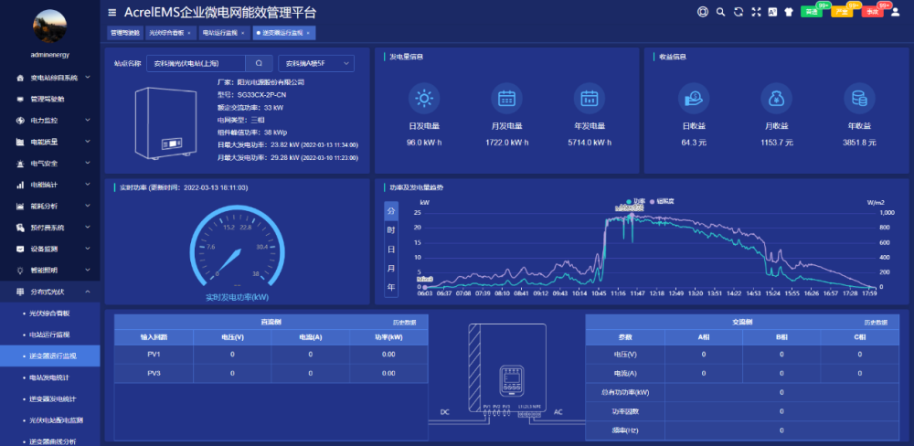 通過曲線圖顯示逆變器功率、環境輻照度曲線