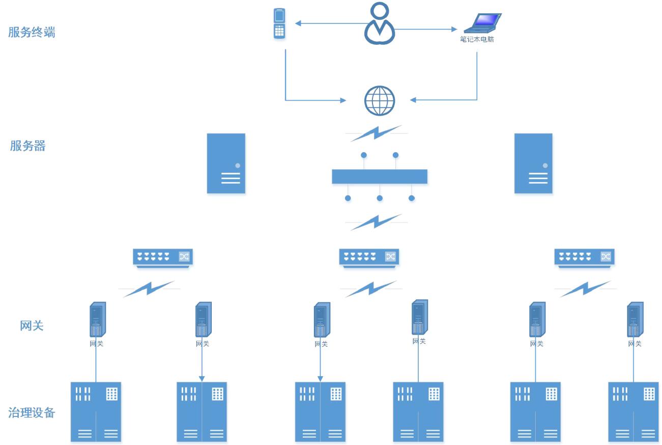 電能質(zhì)量分析與治理系統(tǒng)平臺主要由電能質(zhì)量治理設(shè)備、物理網(wǎng)關(guān)、服務(wù)器及服務(wù)終端四部分組成,其中電能質(zhì)量治理設(shè)備作為基礎(chǔ)實現(xiàn)對數(shù)據(jù)采集與電能質(zhì)量補償?shù)染唧w服務(wù)動作,物理網(wǎng)關(guān)實現(xiàn)設(shè)備與服務(wù)器間的數(shù)據(jù)傳輸以及對設(shè)備進行策略功能分配,數(shù)據(jù)經(jīng)由服務(wù)器最終以服務(wù)終端為媒介為用戶提供可視化展示。