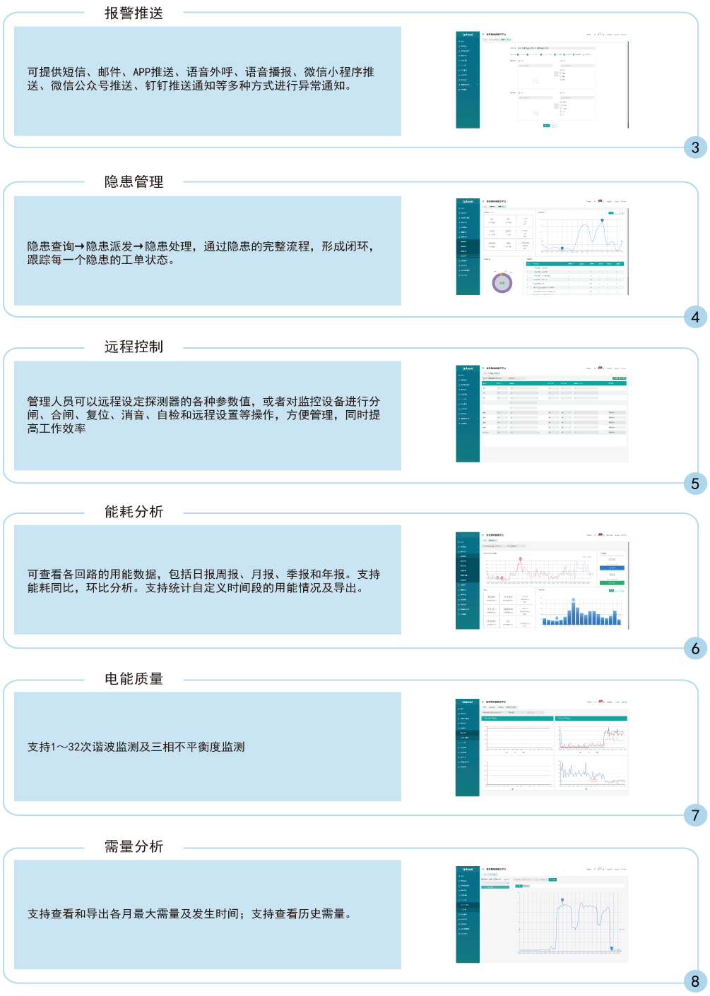 安科瑞AcrelCloud-6000安全用電管理云平臺是針對我國當(dāng)前電氣火災(zāi)事故頻發(fā)而研發(fā)的一套電氣火災(zāi)預(yù)警和預(yù)防管理系統(tǒng)。該系統(tǒng)是基于移動(dòng)互聯(lián)網(wǎng)、云計(jì)算技術(shù),通過物聯(lián)網(wǎng)傳感終端,將辦公建筑、學(xué)校、醫(yī)院、工廠、體育場館、賓館、福利院等人員密集場所的電氣安全數(shù)據(jù),實(shí)時(shí)傳輸至安全用電管理服務(wù)器,為用戶提供不間斷的數(shù)據(jù)跟蹤、統(tǒng)計(jì)分析和安全監(jiān)管。平臺將發(fā)現(xiàn)的各種安全隱患信息及時(shí)告警提醒,并推送給相關(guān)人員,以便及早發(fā)現(xiàn)和消除隱患,真正做到防患于未然。