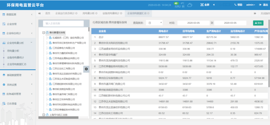 企業用電數據分析:按年/月/日統計企業以及行政區域的總用電情況,可導出成報表。