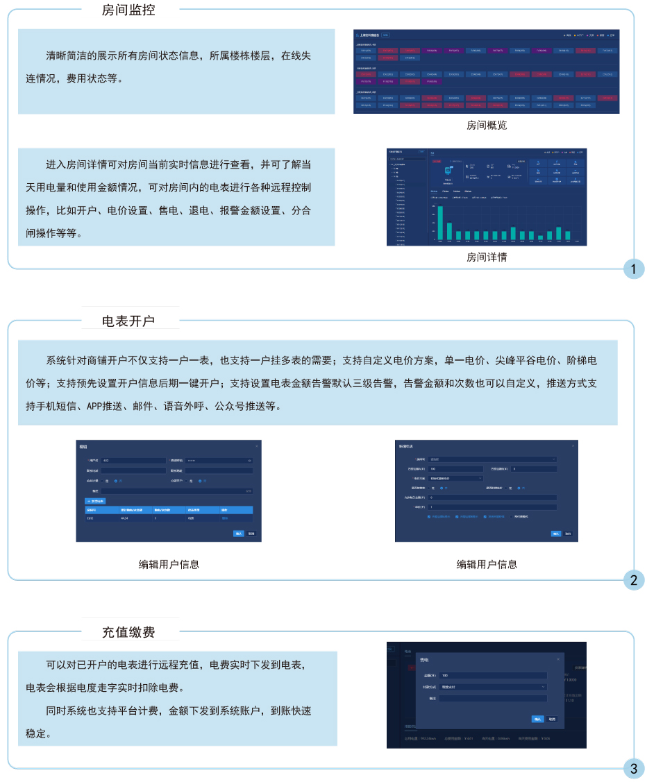 主要完成電能表/水表參數(shù)設(shè)置,商戶售電/售水管理及能耗管理工作,操作簡(jiǎn)便,實(shí)現(xiàn)物業(yè)公司遠(yuǎn)程實(shí)時(shí)操作實(shí)時(shí)監(jiān)控,具有良好的人機(jī)界面,能夠有效的統(tǒng)計(jì)和管理數(shù)據(jù)。安裝方便,是用電管理部門、商業(yè)廣場(chǎng)和物業(yè)小區(qū),提高用電用水管理水平,解決收費(fèi)難問(wèn)題的理想產(chǎn)品。