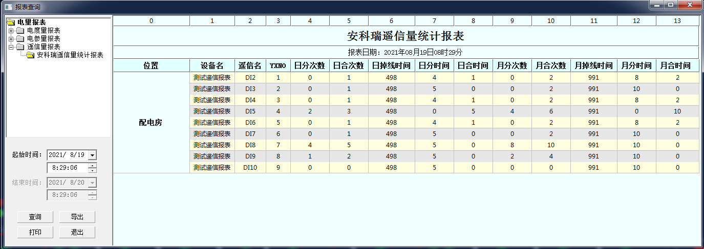 Acrel-1000綜合自動化監控系統可以查詢各回路或設備指定時間的運行參數,報表中顯示電參量信息應包括:各相電流、三相電壓、總功率因數、總有功功率、總無功功率、正向有功電能、溫度值等。可以按照日、月、年的格式進行查詢、導出、打印。