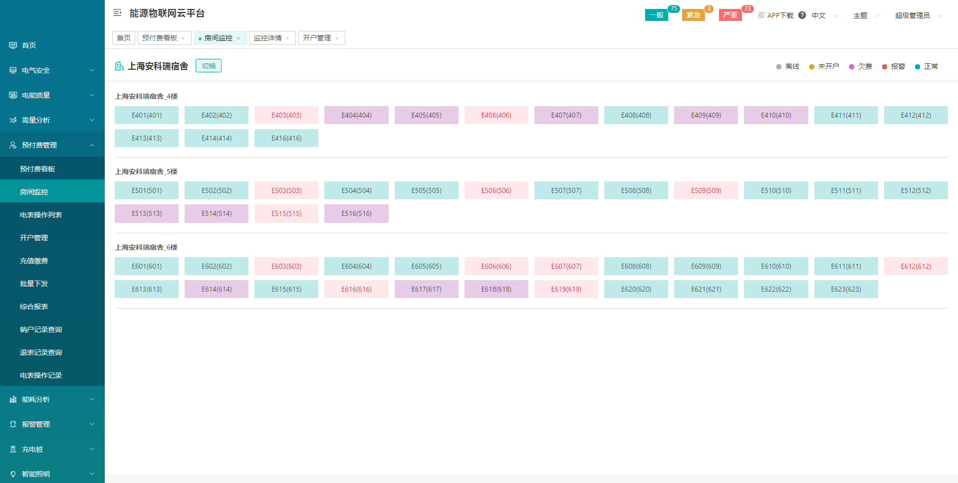 系統(tǒng)針對(duì)商鋪開戶不僅支持一戶一表,也支持一戶掛多表的需要;同時(shí)解決了項(xiàng)目改造后新老表切換時(shí),老表金額轉(zhuǎn)入的問題;支持峰谷電價(jià);可對(duì)單表設(shè)置功率過載的閾值,也支持設(shè)置單表金額報(bào)警的兩級(jí)閾值。