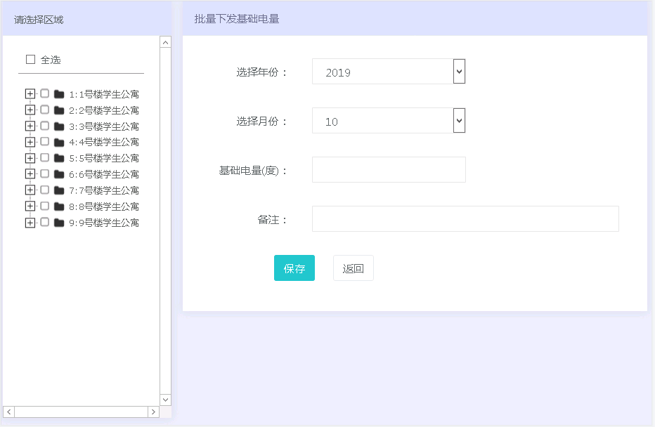 新生入學(xué)后為方便學(xué)校統(tǒng)計(jì)不受上屆學(xué)生使用影響,需要對(duì)宿舍電表進(jìn)行初始化,設(shè)置電表初始金額、電價(jià)、補(bǔ)助金額、報(bào)警金額、透支金額等,支持批量設(shè)置。