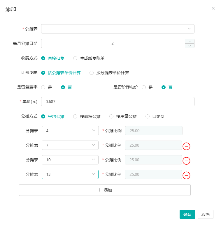 支持公區(qū)電費(fèi)分?jǐn)偅吭伦詣?dòng)將公攤表用能按照設(shè)置好的規(guī)則下發(fā)給對(duì)應(yīng)的分?jǐn)偙恚瑴p輕物業(yè)公區(qū)統(tǒng)計(jì)收費(fèi)壓力。