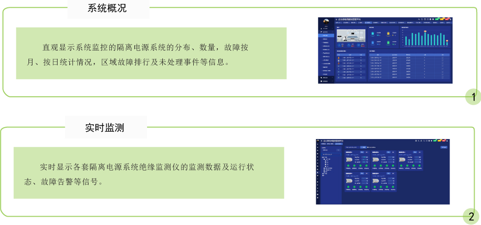 醫(yī)用隔離電源監(jiān)控系統(tǒng)用于集中監(jiān)控醫(yī)院門急診樓、住院樓內(nèi)所有醫(yī)療2類場(chǎng)所醫(yī)用隔離電源系統(tǒng)的運(yùn)行狀態(tài),實(shí)時(shí)監(jiān)測(cè)各系統(tǒng)的絕緣狀況、負(fù)載率及變壓器的運(yùn)行溫度。一旦某套隔離電源系統(tǒng)出現(xiàn)故障,能發(fā)出報(bào)警信息,提醒工作人員及時(shí)排查故障,消除隱患,保障各醫(yī)用隔離電源的安全可靠運(yùn)行。