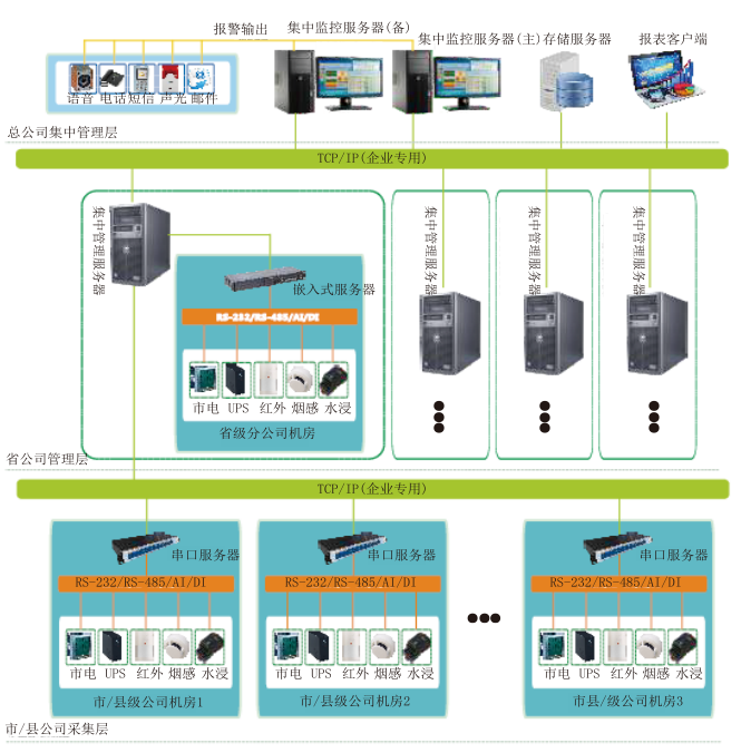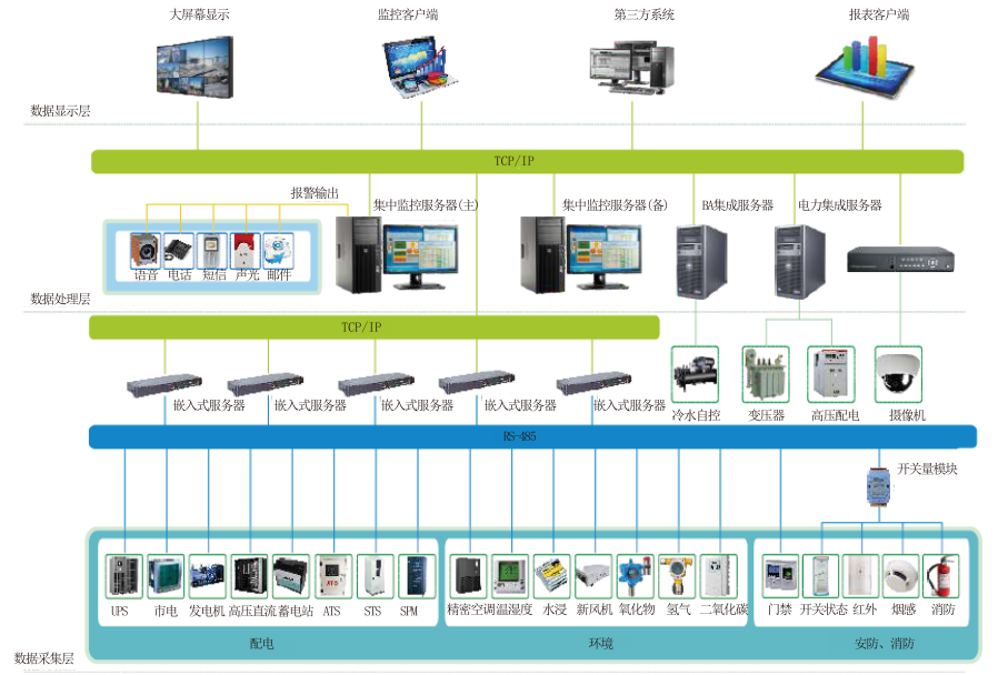 基礎設施集中監控采用一體化監控采集系統(運行在嵌入式服務器上),系統主要功能有:
