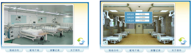 系統(tǒng)具有一次圖及現場分布圖顯示功能,能直觀的了解并及時地發(fā)現IT供電系統(tǒng)的報警地點或區(qū)域,從而方便專業(yè)人員及時到達現場進行故障排查;