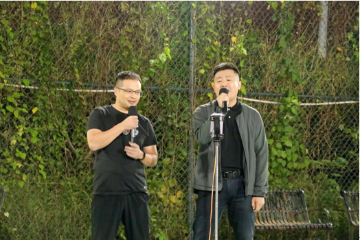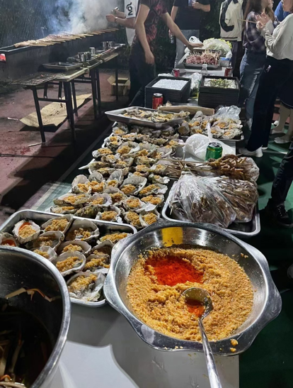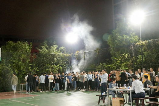 漫步籃球場,夜幕已經降臨,氣氛逐漸活躍。大家的熱情如同滾燙的爐火,沖散了寒露時節(jié)的絲絲涼意?;@球場圍滿了觀眾,燒烤攤邊炊煙裊裊,餐桌上擺滿了飲料啤酒,今晚是狂歡盛宴!甩開平日里的拘束,此刻,只有朋友、燒烤、酒、音樂!
