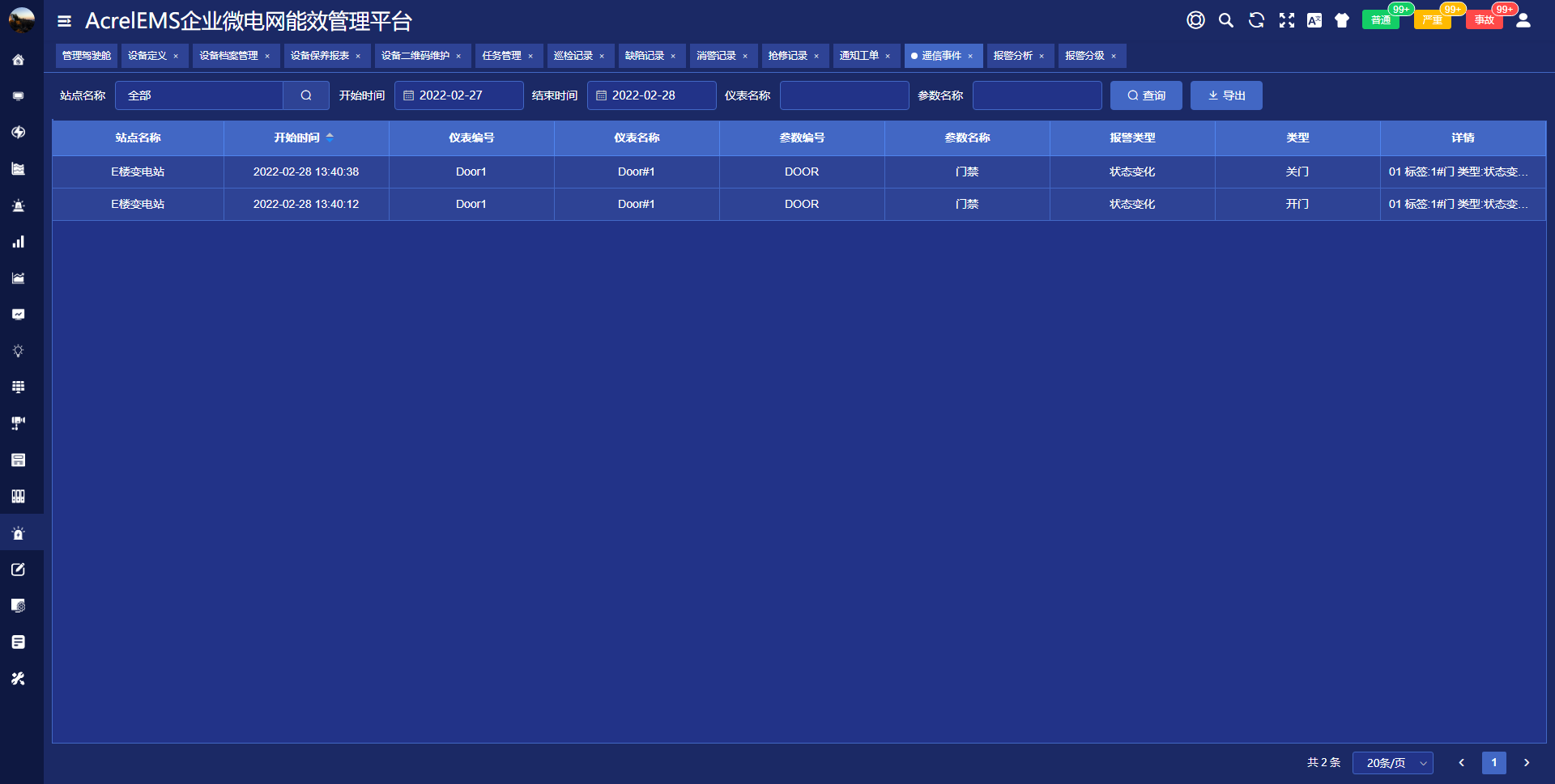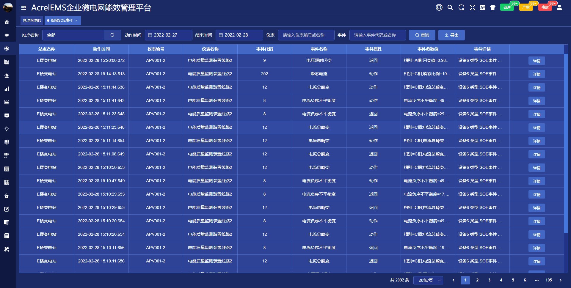 電力監(jiān)控系統(tǒng)能夠?qū)b信變位,保護(hù)動(dòng)作、事故跳閘,以及電壓、電流、功率、功率因數(shù)越限等事件記錄進(jìn)行存儲(chǔ)和管理,方便用戶對(duì)系統(tǒng)事件和報(bào)警進(jìn)行歷史追溯,查詢統(tǒng)計(jì)、事故分析。
