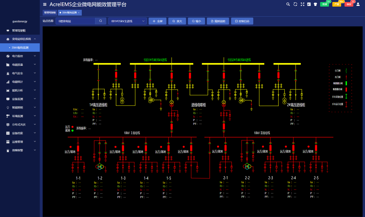 系統人機界面友好,以配電一次圖的形式直觀顯示配電線路的運行狀態,實時監測各回路電壓、電流、功率、功率因數、電能等電參數信息,動態監視各配電回路斷路器、隔離開關、地刀等合分狀態、柴油發電機狀態、柴油液位、UPS狀態、電池信息等,以及有關故障、告警等信號。