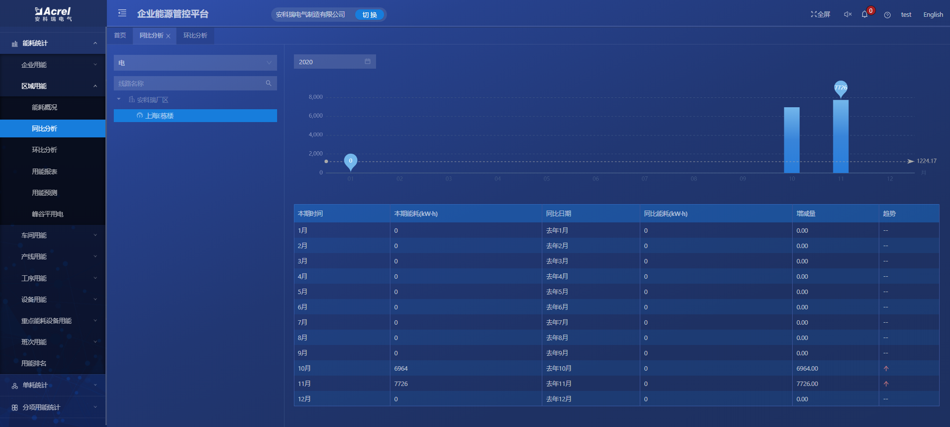 統(tǒng)計(jì)各個(gè)監(jiān)測(cè)節(jié)點(diǎn)(工廠、車間)的當(dāng)年、季度、月、周、日各類能源消耗費(fèi)用,其中電包括峰電量、峰電費(fèi)、谷電量、谷電費(fèi)以及平均電量和平均電費(fèi)。