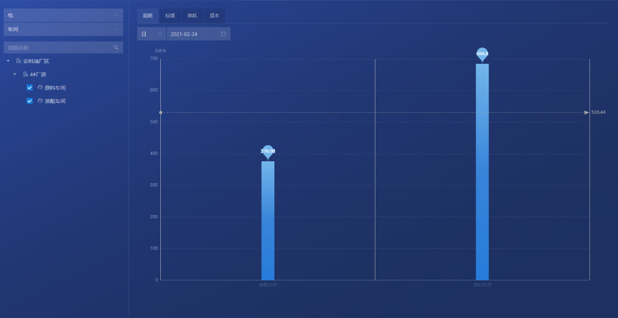 將所有有關(guān)能源的能源參數(shù)集中在一個(gè)看板中,能從多個(gè)維度對(duì)比分析,實(shí)現(xiàn)各個(gè)產(chǎn)業(yè)線的對(duì)比,幫助領(lǐng)導(dǎo)掌控整個(gè)工廠的能源消耗,能源成本,標(biāo)煤排放等的情況。