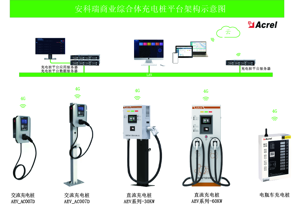 商業中心停車場有電動汽車和電動自行車,均需要提供充電樁。充電樁管理系統通過物聯網技術對接入系統的充電樁站點和各個充電樁進行不間斷地數據采集和監控,解決物業、用電管理部門的充電樁使用、監控問題。電動自行車充電可采用投幣、掃碼充電方式,電動汽車支持IC卡和掃碼充電方式。遠程充電樁系統可實時遠程完成啟動充電、強制停止、單價設置等控制指令,用戶可通過APP、微信、支付寶小程序掃描二維碼,進行支付后,系統發起充電請求,控制二維碼對應的充電樁完成電動汽車的充電過程。同時對各類故障如充電機過溫保護、充電機輸入輸出過壓、欠壓、絕緣檢測故障等一系列故障進行預警;能夠遠程控制,提供財務報表和數據分析等功能。