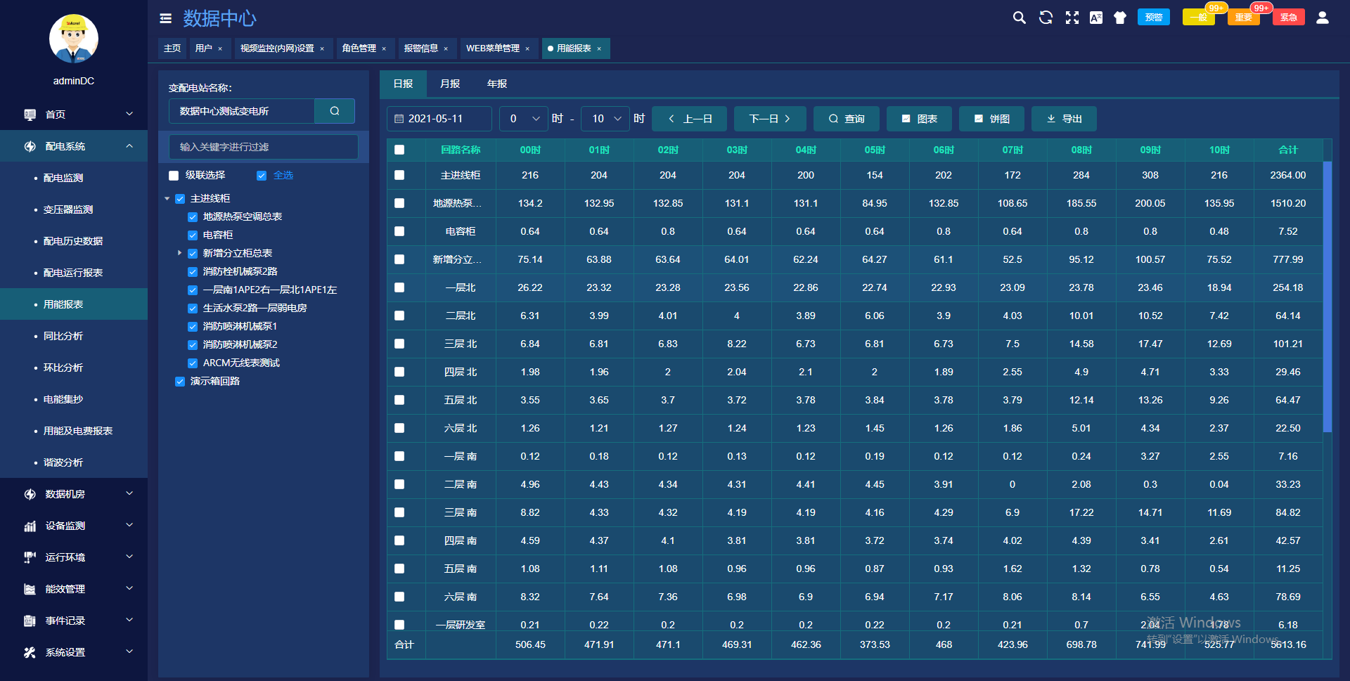 將各個回路,每個時段的用能情況統計到報表中,直觀顯示各日、月、年的用能。
