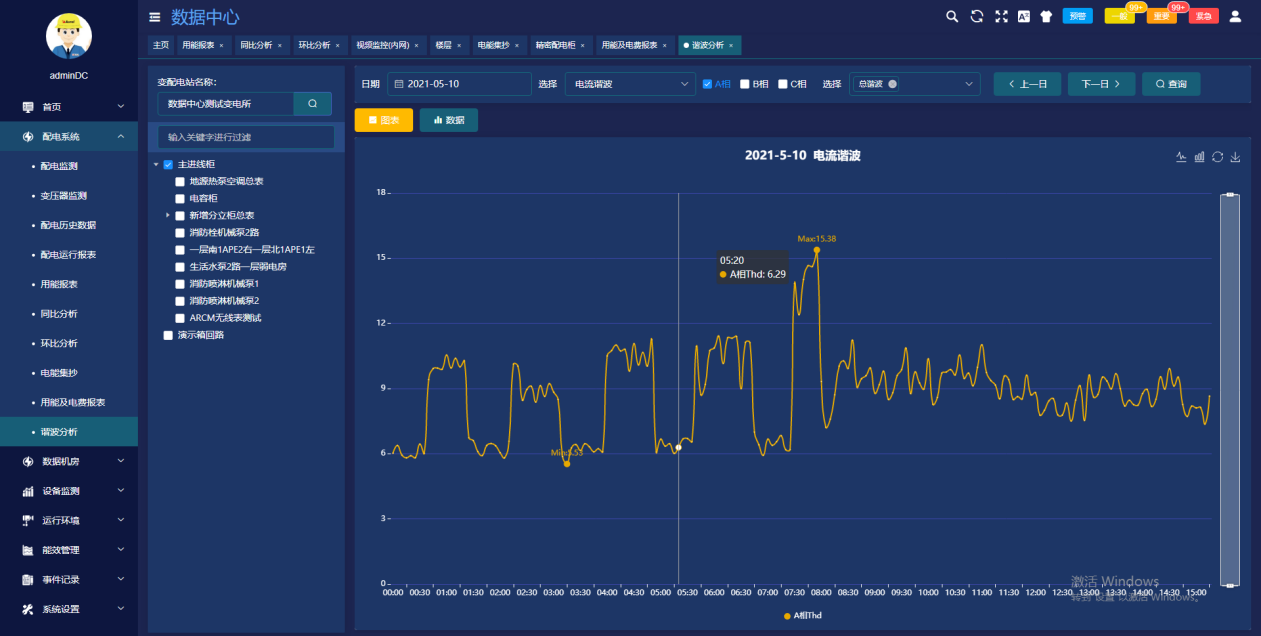 配電歷史數據可以展示每個配電回路的電流,電壓,功率因數等參數。并且可以通過日期,查詢歷史數據。