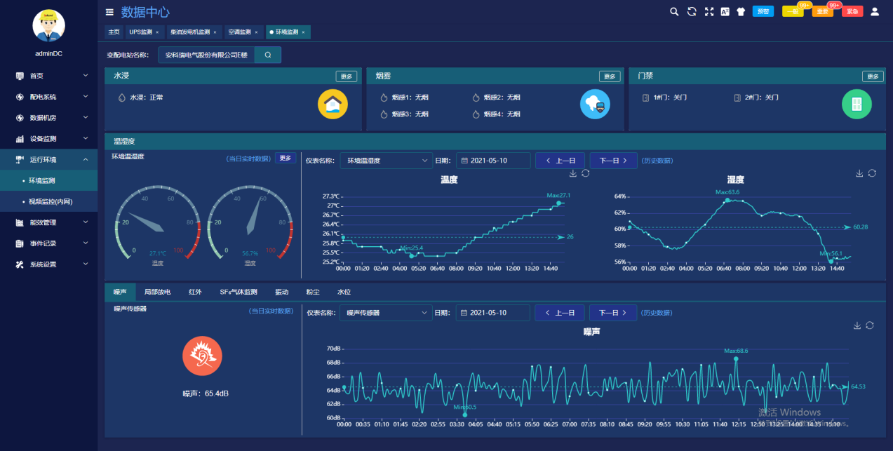 環境監測主要包括現場溫度、濕度、門禁狀態、水浸狀態、噪聲等設備。
