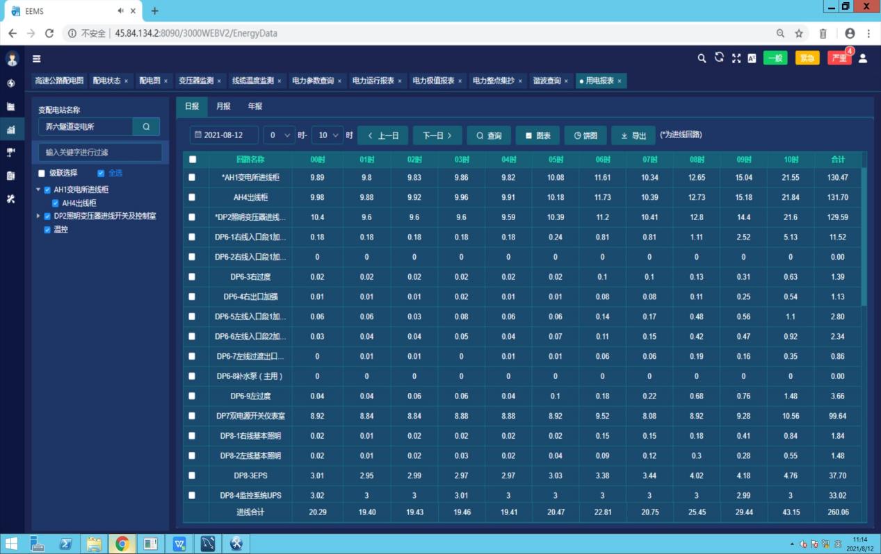 查詢各回路或設備指定時間的運行參數,報表中顯示電參量信息應包括:各相電流、三相電壓、總功率因數、總有功功率、總無功功率、正向有功電能等.