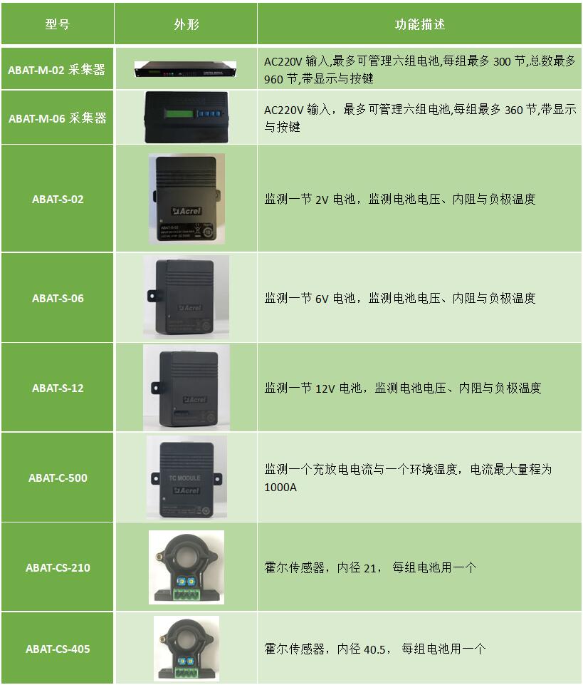 該系統(tǒng)具有監(jiān)測電池的電壓、內(nèi)阻與內(nèi)部溫度功能,安裝、維護(hù)與接入非常方便。系統(tǒng)主要由ABAT-S模塊、ABAT-C模塊及ABAT-M采集器組成,可通過采集器查詢告警與實(shí)時(shí)數(shù)據(jù)、設(shè)置參數(shù)等,可選配監(jiān)測平臺(tái)實(shí)現(xiàn)網(wǎng)絡(luò)化集中管理。
